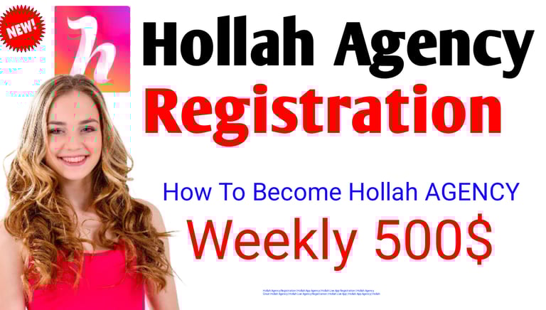 oin Hollah Agency. Hollah agency Registration. Hollah Agency can earn with your team. Create your Hollah Agency today and become a successful Hollah
